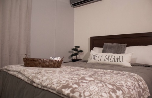 Our place is very cozy, the bed is so comfortable that anyone who sleeps in it will wake up feeling brand new! The area is super safe, and there are also cameras on the outside of the property to provide an even safer environment! This booking consists of one room and the kitchen area that has a wide couch that can allow for one additional guest.