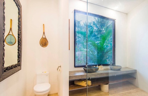 One of three holiday villas at The Melaya Villas compound right on the beach of North West Bali. The villas are luxuriously equipped with a large pool of 5 x 15 m and a lush tropical garden of 2000 sqm directly adjacent to the beach. The living area of the villa is an antique Joglo that has been moved from Java to Bali. Most of Joglo part are at least 70 years old and therefore it gives the villa a truly authentic Indonesian character. The bedrooms are situated around the Joglo, each with a private rain shower bathroom, air-conditioned bedroom, a fan, a mosquito net, a walk in closet, safety box, and study table.