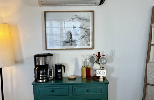 Inside the living room you’ll find this charming cottage also boasts a coffee bar that is fully stocked with tea and other goodies to help you start your day off right. Whether you're a coffee connoisseur or prefer something a little more herbal, you'll find everything you need to brew the perfect cup.
