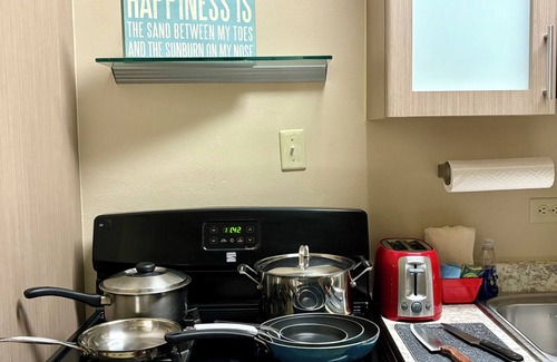 All units have AC and Serta queen size mattresses, flat screen TVs & WIFI. The units have screened doors & windows to enjoy the Caribbean breeze as well as ceiling fans. Flooring is tiled throughout and there are tiled walkways leading to each unit. Each unit has a kitchen with full size stove/oven & refrigerator with filtered ice maker, double sink and microwave. Kitchens are fully equipped for preparing meals.