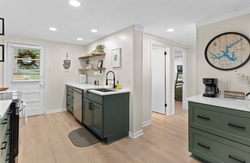 *You'll love the updated kitchen, fully stocked with everything you need to whip up a feast. Plus, there's a coffee bar for your morning brew and an additional drink fridge.