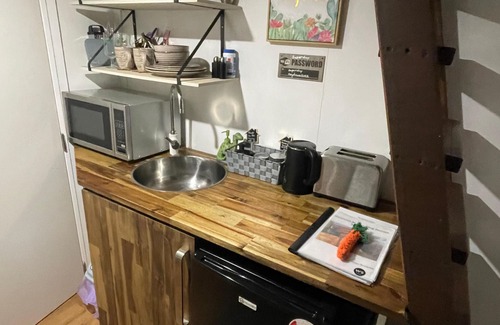 Our kitchenette and pantry is equipped with convenient appliances and storage so that you can enjoy morning coffee and meals during your stay.