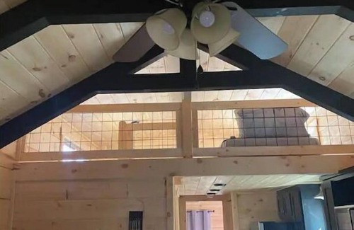 Inside this home, guest will find beautifully appointed living spaces: all walls are white pine; a full kitchen with quartz counter tops and stocked with everything needed to prepare and serve meals; a master bedroom with a king-sized bed, desk, wardrobe and plenty of storage; a cozy loft space with two twin mattresses; a full bath with standup shower and seat; a spacious living room. A queen air mattress is available as well.