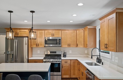 features a king size bed with a Zinus mattress and the bathroom has a spacious walk-in tiled shower with two shower heads. Two secondary bedrooms with queen sized Zinus mattresses share the main bathroom. Laundry facilities include a washer and dryer with laundry detergent provided for you.