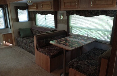 This RV is a private and secluded fully equipped 29 ft camper comes with everything you need to enjoy camping in the woods, you have a fire pit, picnic table fully stocked camper , it has full power hookup water sewer, all you need to bring is your firewood and bring your clothes and food. The camper is located 1.5 Miles from the tail Waters of the gauley River great for rafting kayaking fishing hiking bring your UTV, ATVs and never have to leave our road to ride and bring your pets it is a pet friendly camper this camper is equipped to sleep up to four people only. if you have any questions please notify me prior to booking. thank you so much! This Camper will soon be called a tiny house. we have mad alot of remodeling changes we have added a full size toilet and just added a tankless water heater you will never run out of hot water.