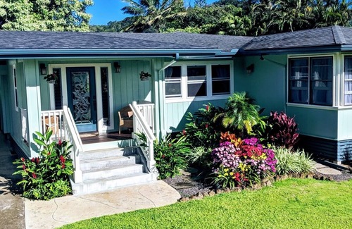 Boulay Inn is nestled on Kauai’s south side in rural Omao. It is your own secluded home away from home with all the amenities to ensure your comfort. There is a spacious airy living area, a queen sized bed, tiled shower and a verdant yard outside your windows. Your accommodations are airy and comfortable with a combination of ceiling fans and sliding glass doors. We have tried to think of everything you might possibly need for your island home. Cooking facilities, entertainment center, including cable TV and Wifi are all available. No need to lug your hair dryer, there is one in your bath. A washer and dryer are provided because we don’t want you to spend any of your Hawaiian vacation in a laundromat.