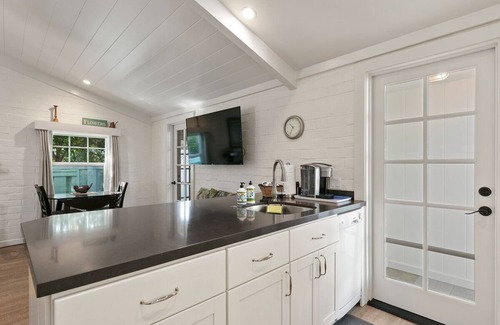 Relax and unwind in this fully restored and updated 1940’s beach cottage just two blocks east of historic highway 101. We’ve tried to think of all the little details that make for a perfect stay from the super quiet Fujitsu heating and cooling unit, to a six port USB charging station for your electronics, a blue tooth speaker, and quality hangers in the two closets. You will appreciate the California king bed, two luggage racks, ceiling fans, armoire, sectional sofa, 55 inch Roku TV in the great room and and Samsung TV in the bedroom. Access your Netflix and other subscription services. The kitchen has a 13.9 CF refrigerator/freezer with ice maker, a two burner induction cook-top, compact dishwasher, deep stainless steel sink, toaster oven with convection bake, a microwave, and a coffee maker. You’re an easy 10-20 minute walk to top notch coffee houses, the great shopping, and fantastic dining in historic Encinitas. Enchanting Moonlight Beach is close as well and we provide the beach chairs, umbrella, towels, cooler and a wagon to haul it all. Come home to an outdoor shower to remove the sand and salt. Bring your tennis or pickleball rackets as there are public courts 1 minute away.
