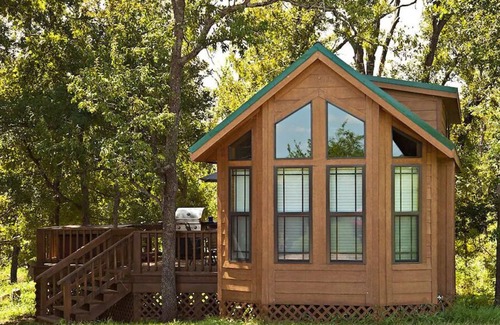 With it's large private deck at the edge of a pecan grove complete with charcoal grill and hot tub, the Southern Belle is perfect for a weekend getaway, especially if you love the outdoors!