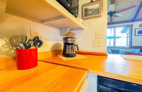 Fully equipped kitchen with cookware, dishware, and flatware