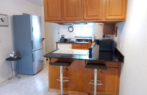 Beautiful landscaped views, designer art 2br-2ba with sofa bed in living room, air conditioned with walk in closets, full kitchen with Microwave, Air Fryer, full size oven, dishwasher, wireless Wi-Fi, both antenna and HBO Max and other free movies, and all dishes, pots and pans and accessories provided, near beach, BBQ, private patio and yard, quiet neighborhood. 55" flat screen TV, full laundry room with washer and dryer, ironing board and iron, beach towels, beach umbrella and chairs, on site parking and car port. Walking distance to restaurants, dry cleaner, grocery stores, fast food, beauty shops, massage parlors, gyms, gas stations, 2 minutes to Lauderdale by the Sea beach and more.