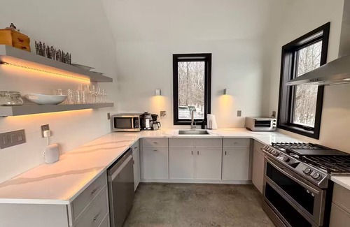 Escape to this cozy one-bedroom home with an additional loft featuring two twin beds, perfect for small families or couples. Enjoy a fully-equipped kitchen, endless views of rolling hills, and a peaceful setting in the heart of Jeffersonville. Relax in the open living area staring out large picture windows, or enjoy a fire under the clear country sky. Ideal for exploring the Catskills or simply unwinding, this retreat offers the perfect mix of comfort and natural beauty. Book your getaway today!