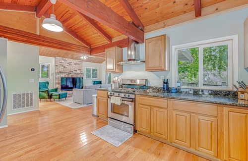 Quiet and cozy, this home provides generous space to relax both inside and out. Sip your morning coffee on the deck as you breathe in the fresh forest air. In the evenings, prepare your favorite meals in the spacious kitchen, linger around the dining room table, and stream movies in the living room late into the night.