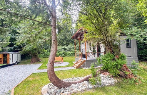 Escape into a charming private custom built tiny home. Located close to the city, yet quiet, and perfect for your quality time. You will find peaceful and PRIVATE retreat with fire pit and sauna.