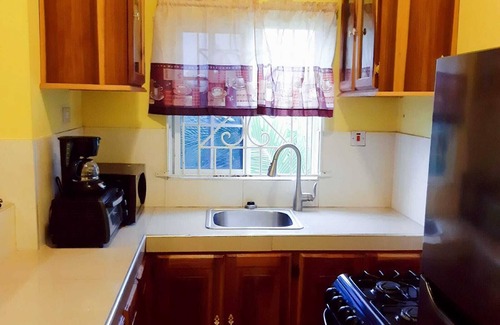 Spacious 1 bedroom that leads to balcony with a view. Kitchenette with amenities, sofa, Cable TV, surveillance cameras, wifi, air conditioned, parking on premises. Fence encloses property. The resort town of Ocho Rios 15 mins away. Ideal for couples or families that wants to vacation together in separate adjoining apartments. Located on upper level of private house.