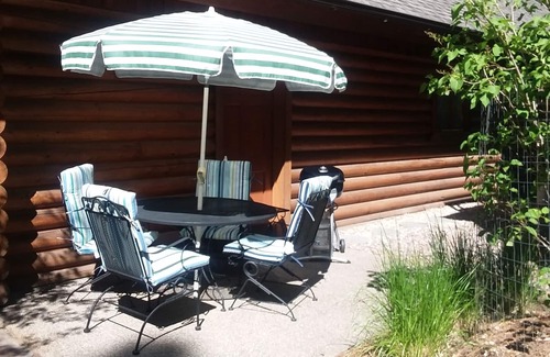 This immaculate, quiet guest apartment, which comprises the second story of our log garage, can be rented for a minimum 2 night stay. We also welcome guests for longer stays at significantly reduced weekly and monthly rates. We provide a short-term lease agreement, requiring a damage deposit, for extended stays. We are located minutes from downtown Hamilton (walkable to town and to the river) in a quiet, park-like setting in the foothills of the Bitterroot Mountains. The guest quarters features a large family/game room with two convertible beds, Comfy Sack lounger, fold-up ping-pong table, Wi-Fi, TV, Quadra-Fire gas stove, and two opening skylights. Fully equipped kitchenette contains several countertop appliances, dishes and utensils, as well as convection, microwave, and toaster ovens. Under the counter refrigerator/freezer plus separate larger refrigerator/freezer in mudroom. The large bedroom boasts a queen bed, sitting area, desk, private balcony, its own Quadra-Fire gas stove, and through-wall air conditioner. Outside, you can enjoy your own patio with table and chairs and a bbq grill.