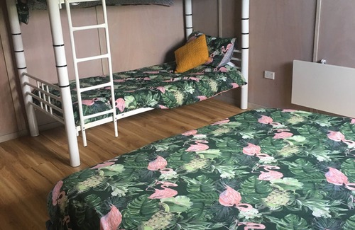 Bedroom is seperate to the main living area. It has a new comfortable king bed with a selection of pillows.
