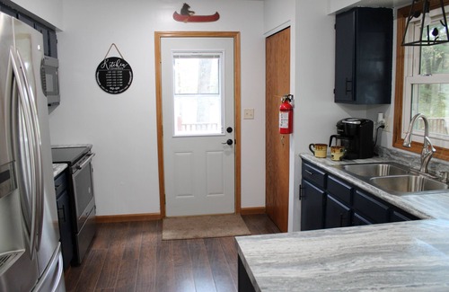 The Little Red House is a split level home that includes 3 bedrooms and 2 bathrooms. On the upper level it has 2 bedrooms, 1 bathroom, kitchen and living rooms. The lower level consists of 1 bedroom, 1 bathroom and laundry with washer and dryer. Nestled back into a half acre lot with beautiful trees and lots of parking. This home gives you the "Up North" feel, while being close to the hustle and bustle or Chetek, Cameron, Rice Lake and Barron. This also has easy access (Roughly 100 yards) to the public boat landing and public boat landing parking. This home is also located on the UTV/ATV and snowmobile trails. There is a private dock at the end of the block. We are half block in from Prairie Lake.