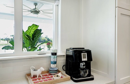 AMAZING ISLAND KITCHEN: Stocked with all the basic cookware/dishware/glassware/utensils for your use. Coffee Pot PLUS, a separate K-cup machine for tea, coffee and hot chocolate. Double ovens, electric cooktop, dishwasher, full-size refrigerator, and storage galore!