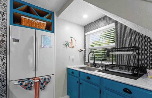The Honey-moon Suite located in S. Cocoa Beach is a luxury Villa offering all the amenities you need to have your own private escape. The large open space backyard is the perfect retreat featuring a private 4-person hot tub, 60" flat screen TV, a "Dream sleep" king bed, queen sleeper sofa, desk space, a full kitchen, stylish walk-in shower. For those that can't disconnect there's fast 300mb download speeds for your streaming devises.