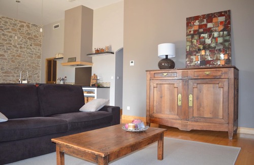 Cottage in a pretty Minervois village in the upstairs of a wine cellar, providing a beautiful solarium south 40m² terrace with private spa for 5 people, garden furniture, barbecue.