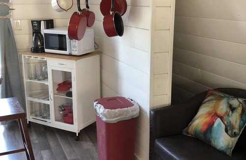There is a shared (with owner) pool for the hotter months behind the main house with access through a side gate by the round pen We strive to give you privacy by the pool!