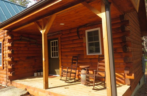 Log cabin 1 bedroom 1 bath, private location, close to shopping and restaurants, hiking and bike riding very close in area. Close to Asheville and Hendersonville, lake Lure and Chimney Rock and DuPont State Forest, porch with rocking chairs to relax and take a nap and watch nature.