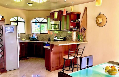 Dedicated office space, hot tub/plunge pool, well stocked kitchen and laundry room. Cool and refreshing, not hot and humid, only 10 minutes to major city with all modern services and shops, including the largest farmers market in Costa Rica every Wednesday-Saturday.
