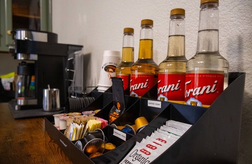 **Coffee Bar Setup w/Ninja 7 Style Espresso & Coffee Barista System, Single-Serve & Nespresso Capsule Compatible, 12-Cup Carafe and Built-in Frother, Coffee and espresso pods, Tea bags, 5 creamer flavors and 3 kinds of sugar**