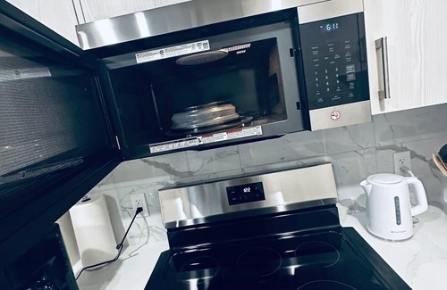 Enjoy the convenience of a full kitchen with a stove, fridge, microwave, cookware, and utensils—whether you’re preparing a quick breakfast or a full dinner. In-unit washer and dryer available for longer stays (see house rules). Clean and stylish with a full shower, fresh towels, and essentials provided. Stay cozy in winter and cool in summer with controlled heating and ventilation.