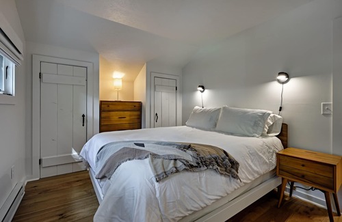Relax in your secluded retreat, tucked into the woods where you can enjoy all Highlands has to offer! In town, this cottage shares beautiful land with the owners. While Foxglove flat remains totally private and out of sight from the main house, there may be the occasional sounds of children playing. Watch the dancing flames of the homes freestanding gas fireplace while enjoying the comforts of the modern living room.