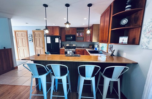 Sunset Ledge is 400 feet away from the ocean (Skilling's River). A path will take you to a beach, where you can swim, hunt for seaglass, sun bathe, or launch your kayak. Kayak delivery service is available in this area. Sunset Ledge is filled with everything you would need on your vacation to make you feel right at home. The kitchen has a gas stove, dishwasher, microwave, and a fridge., coffee maker, and Kurieg machine. There is a laundry room with a utility sink, washer and dryer. There is a patio fire pit area outside and chairs to take to your very own beach.