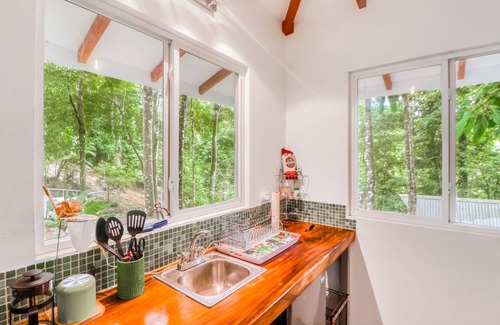 If a secluded, off-grid adventure complete with natural pools, endless hiking trails, waterfalls, and tropical foliage is what you are after, this Lost Pools Bungalows will be just the place to get away from it all! Wake up each morning to the sounds of nature and sip a cup of coffee on your private deck as the sun comes up. You will have all of the comforts of home with a well-equipped kitchenette, free WiFi, and an updated full bathroom with eclectic tiling and fixtures. Lost Pools is a mini eco compound, so guests will need to be conscious of power usage during their stay. When days heat up, head down to the shared pool and take a dip or simply follow the river and hop into one of the many deep pools along the trail. Not to mention, the lanai, bar area, and gas grill will come in handy for whipping up tasty meals as the sun goes down!