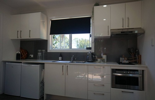 Modern completely self contained tiny house with own private access and off road parking. Private deck with access to the large swimming pool. The pool is shared with the main house. Laundry facilities are available in the main house upon request.