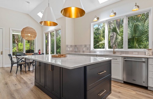 Welcome to Southern Charm, an exquisite retreat nestled on a quiet cul-de-sac in the heart of Sea Pines. This grand 4-bedroom, 4.5-bathroom home with a large loft and dual living spaces comfortably sleeps up to 12 guests, offering over 4,000 square feet of stylish coastal luxury. Renovations including all-new bathrooms, kitchen, and flooring were completed in April 2025!