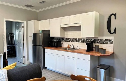 COBRE Retreat, is a cozy, renovated ground level apartment with private pool and backyard oasis! It is centrally located in NE Florida, a short drive from NAS Jax, NS Mayport, OP Medical Center, Downtown Jax, the surrounding beaches and steps from the St Johns River. The property will keep you close to everything, but far enough to relax… enjoy a large kitchenette, private workspace in the bedroom, charcoal grill on the patio by the pool, a 55” smart tv and high speed Wifi for all your needs.
