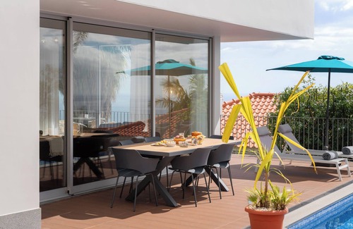 This elegant three-bedroom villa, situated in a quiet and sunny area of Calheta, offers a comfortable and unforgettable stay with stunning sea views.