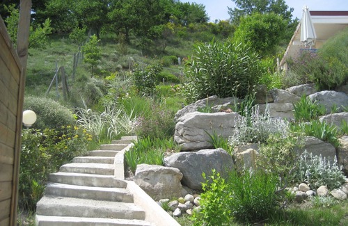 Attached to the terrace, a private swimming lane 2 m by 5 m surrounded by its wooden beach awaits you to cool off. Two other terraces, one covered and a very large space on more than one hectare. Even higher for those who are not afraid to climb the canyon and a sight to cut the breath.