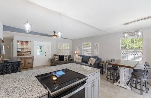 We’ve just completed a renovation that includes new tile floor, new kitchen with bar and new furnishings.