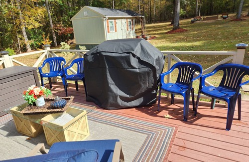 A beautiful Prime Retreat getaway on nearly 3 acres of private property. This first-class stay offers privacy, comfort, luxury indoors/outdoors, and top-notch cleanliness. Free Wi-Fi, satellite cable, office space, reading material for relaxation/enjoyment, firepit, grilling, nature trail, etc. Clean and safe for arrival and ready for visiting guests.