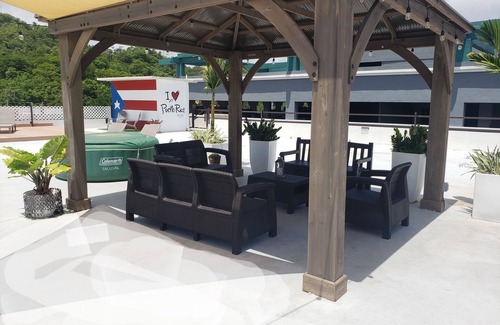 Whether you're here for a weekend getaway or an extended stay, Melao Lodge has everything you need! Located in the heart of the Vega Baja historic district, Melao will charm you with its vibrant colors and elegant spaces. Your private bedroom will become your home away from home. Rest comfortably and breathe fresh air in your very own private balcony, and enjoy a hot shower in your private bathroom, next to the room, after a long day at the beach! If you're visiting the area for business, high-speed wifi and a comfortable workstation are waiting for you in your room. Our guests fall in love with our elegant shared spaces: Living room, kitchen, dining area, rooftop. Get lost in a book, watch your favorite series on Netflix (or maybe your favorite telenovela on local TV!), or play one of the available board games in one of our three living room areas. Cook dinner in the kitchen or order carryout from one of the delicious local food spots! Wake up drinking a cup of Puerto Rican coffee, one of the best-tasting in the world, while listening to the sounds of "el pueblo" (the town) on our larger balcony. Relax in our ROOFTOP with Jacuzzi and New POOL. Regardless of your reasons for visiting Puerto Rico, we know that you will fall in love with our hidden gem. Please contact us if you have any additional questions and we will be happy to chat!