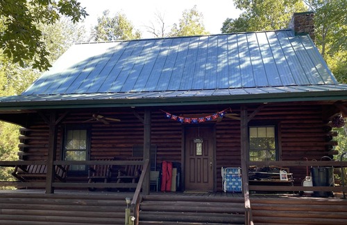 PRIVATE!! Beautiful log cabin secluded on 16 acres near Glendale Fish & Wildlife. 2 acre lake for fishing/pedal boat/kayak/swimming. Pond is well stocked for fishing & great for relaxation. Large covered front porch, hot tub outside basement with additional outside firepit, outdoor firepit with picnic tables, full basement with sectional seating, indoor fireplace. Accommodates 6 people in beds/pullout sofa but also additional sleeping area in basement. Washer/dryer, dish network tv. Perfect to unwind! Please bring your own firewood. If you want to use fire pit. You can use the cabin/lake area but do not go wondering around on the rest of the property or neighbors. There could be hunters in the tree stands on adjoining property and you will put yourself in danger. Do not move any furniture