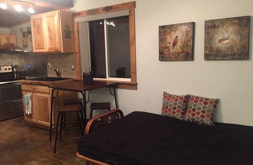 Only 6 miles from Clemson stadiums. The rental is a 500 sq' beautiful studio apartment with parking, coded entrance, and a private courtyard w/ a grill. It also includes a king size bed, an extra thick mattress futon, bathroom and a full kitchen with provided coffee/snacks. The neighborhood is very friendly and safe feeling. I would be more than happy to advise you on things to do and restaurants in the upstate area. I love sharing the beautiful upstate with visitors!