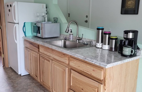 Enjoy the comforts of a private suite in an occupied home with separate entrance and side yard. House is located in South Anchorage with views of the Chugach Mountains and Turnagain Arm. A 15-minute drive from the airport and immediate access to the Seward Highway to take you south to Girdwood or north to Denali, wherever your travel adventures take you. One bedroom with ¾ bath and a half kitchen with an induction countertop electric burner. Fresh Alaskan coffee in K-cup or beans to grind to suit your taste. Kitchen area has all the amenities if you'd like to make a home-cooked meal. This suite is also the perfect set-up if you're just needing an overnight stay. Pet friendly (small pet fee, please contact Host prior to booking)!