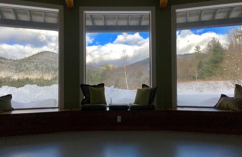 The Kiva Suite is spacious, (1,000 sq ft) and cozy with a retro/contemporary vibe. The partially open floor plan has a living area with a floor-to-ceiling glass view wall and 12-foot ceilings. The view is simply amazing. Our entrance is across from the confluence of two rivers, the Deerfield and the North. Walk down the driveway to spend a day where swimming is magical. If you love fly fishing, this is the place for you. Just walk to a prime fishing spot. Water lovers can enjoy the rivers and bask on warm smooth glacial rock formations or spread a blanket on the river-sand beach and watch eagles fishing nearby. The perfect day of swimming and fun in the sun! Yup, Paradise.