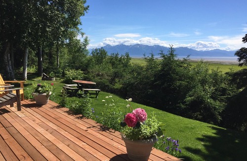 We are in a quiet neighborhood 5.3 miles from the airport on the bluff overlooking the Arctic National Wildlife Refuge. This area is protected habitat for Sandhill cranes, eagles, black bear, moose, etc. The tides make the breathtaking scenery change by the minute. We have a separate arctic entry into our home ( in which we live) for guests and the guest space ( 1 bedroom, one living room area, small kitchen full and one half bath) is a mother in law space,. there is a locked door at the end of the hall for privacy. The guest space is perfect for one party of 1-2 people: The full bath is a walk through from one bedroom to the living room area, w/ locking doors on either side. We upgraded last spring and added a small kitchen and changed out the 2nd bedroom to living room.