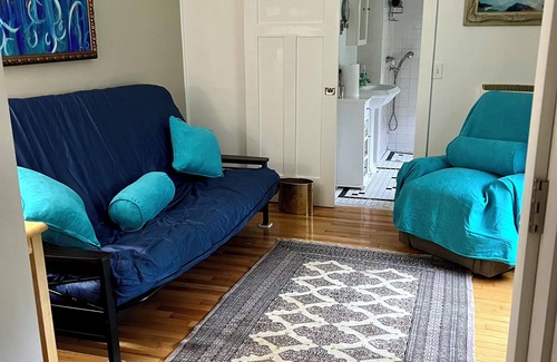 This farmhouse in Kerhonkson is perfect retreat for your escape. This large shared Farmhouse offers you a 2 room suite with private bathroom features a cozy queen bed and a futon, ideal for 2 guests. Enjoy the soothing shower and hair dryer in the bathroom. With amenities like AC, WiFi, Fresh water and coffee in the room.. Our place is equipped for both long or short stays to make your holiday, wedding, vacation, one to remember.