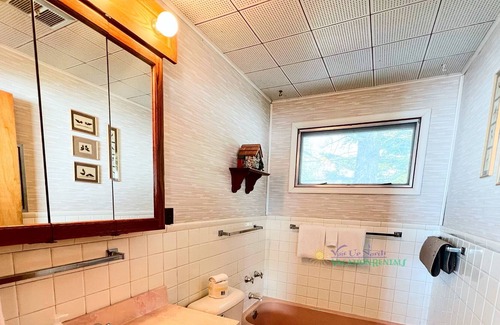 Outside you will find beautiful clear water, a sandy beach area, and some watercraft for your use! Enjoy all of the beauty, playing corn hole down by the water or kayaking across the lake. Grill with a view! There is plenty of for kids to roam and play. Nice Sandy area at the shore. Lots of outdoor seating too. Your well-mannered pet is welcome.