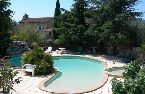 In St Julien de Peyrolas, at the bottom of the Ardèche gorges, 4 comfortable apartments, in large Provencal stone mas with swimming pool 13/5 on 5000 m² of fenced and wooded land with pine forest.