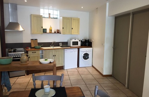 KITCHEN CORNER WITH LIVING ROOM OVERLOOKING THE GARDEN (GLASS BAY); POSSIBILITY OF BROILING. APARTMENT OVERLOOKING A QUIET QUIET AREA / INDEPENDENT ENTRY / BATHROOM POSSIBILITY OF SLEEPING IN BEDROOM FOR TWO PEOPLE / ON SOFA / APARTMENT SITUATED IN FAMILY HOUSE / RECENT RENOVATION / OWNER AVAILABLE FOR EVERYONE IN THE HOUSE OF REFERENCING AT THE LEVEL OF THE TOURIST OFFICE / WE HAVE A T2 APARTMENT (TERRACE) THAT IS REFERENCE BUSINESS CHARTER AND 3 KEY HOLIDAYS AT THE SAME ADDRESS BUT WHO