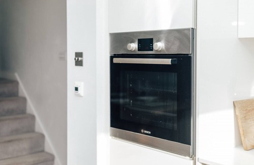 The kitchen is sleek and modern with all utensils required to cook up a feast.